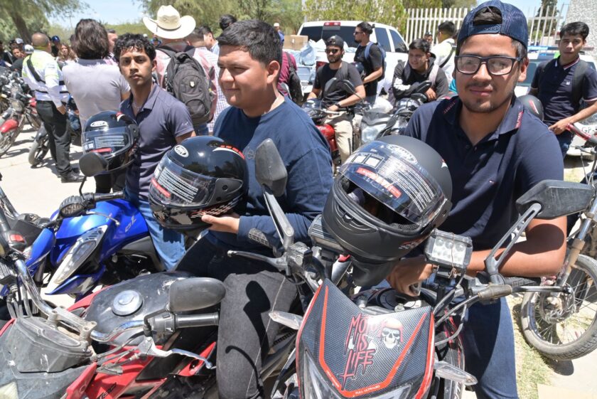 Más de 500 motociclistas recibieron gratuitamente cascos y chalecos reflejantes en Gómez Palacio