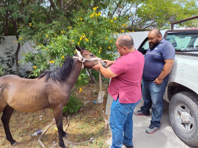 Atienden reporte de yegua y su cría deambulando en la colonia Santa Rosa