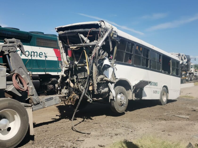 Alrededor de las 14:40 horas de este lunes, un autobús de pasajeros de la Ruta Sur Panteones se quedó sin frenos bajo el paso elevado del bulevar Rodríguez Triana y fue embestido por una locomotora que circulaba sobre las vías del tren, informaron testigos.