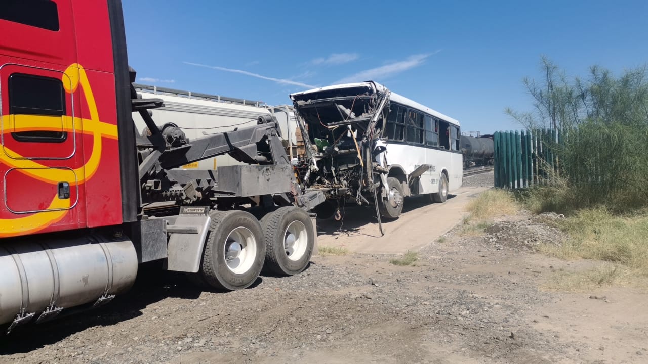 El autobús fue retirado del sitio y personal de Ferromex se encuentra resguardado el punto donde el portón fue derribado.