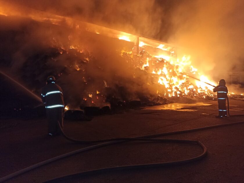 Sofocan los bomberos incendio en establo que contenía alfalfa