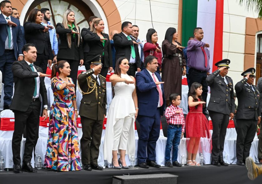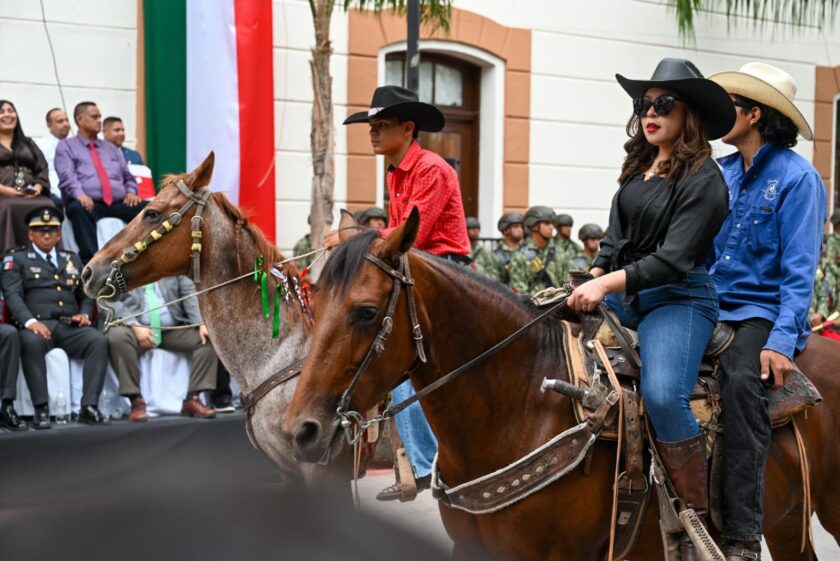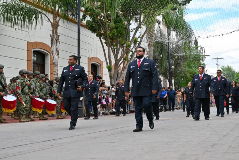Lerdo, Durango.- La Presidenta Municipal Susy Carolina Torrecillas Salazar encabezó este martes el tradicional Desfile Cívico-Militar del 215 Aniversario de la Independencia de México, junto a su esposo Homero Martínez Cabrera, el Teniente de Infantería Erubey Domínguez Martínez y, el General de Brigada, Edilberto Jasso Godoy del Mando Especial de la Laguna, además de directores, regidores del Ayuntamiento, servidores y funcionarios públicos.