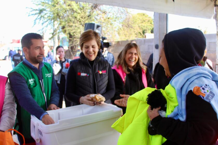 Durante esta jornada se entregaron despensas, cobijas, ropa invernal, alimentos y bebidas calientes, brindando apoyo directo a familias que enfrentan condiciones climáticas adversas.