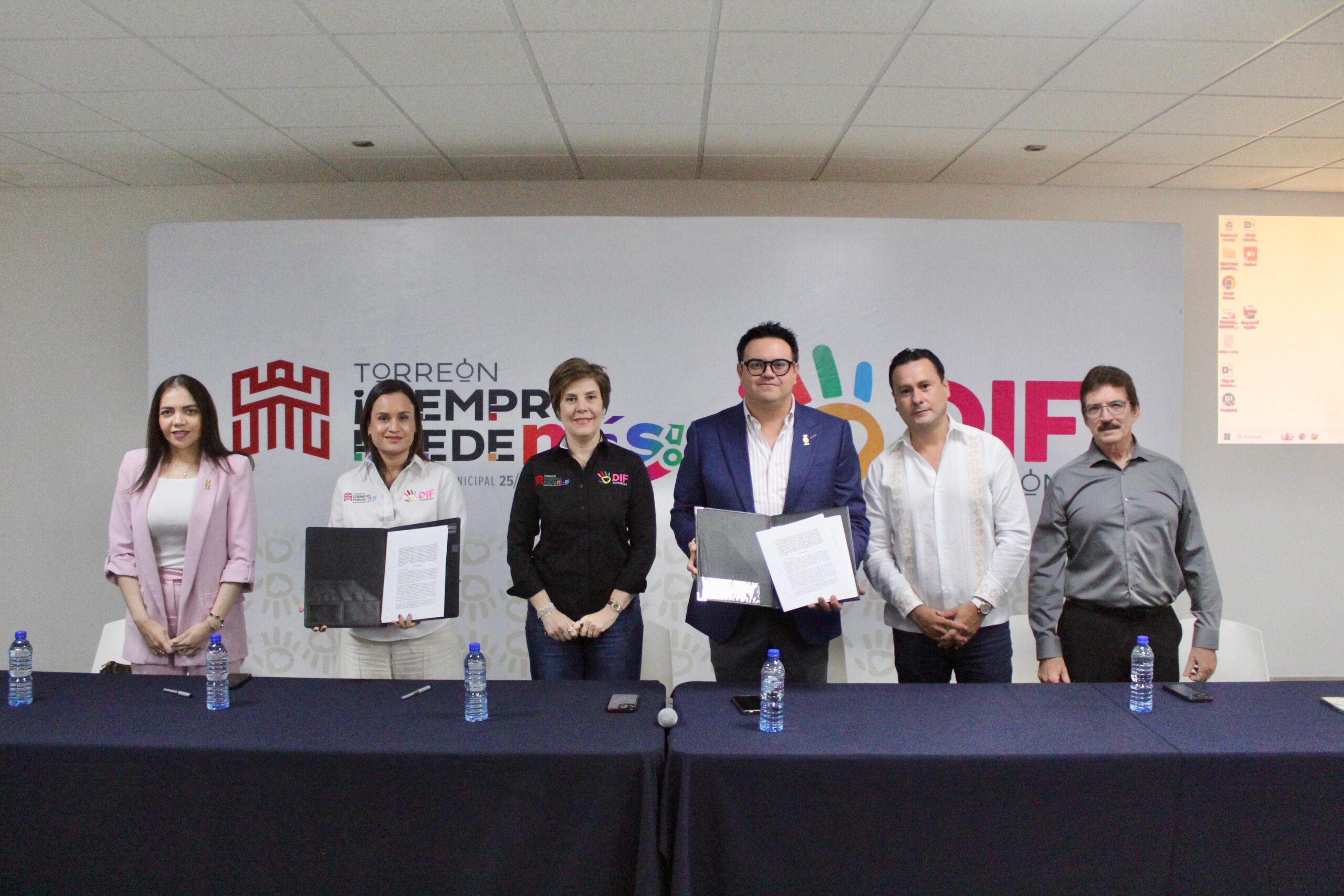 La firma del documento estuvo a cargo de la directora general de DIF Torreón, Marlene Martínez Valdés, y del presidente del Colegio de Notarios de Torreón A.C., Salvador Sánchez Ávila.