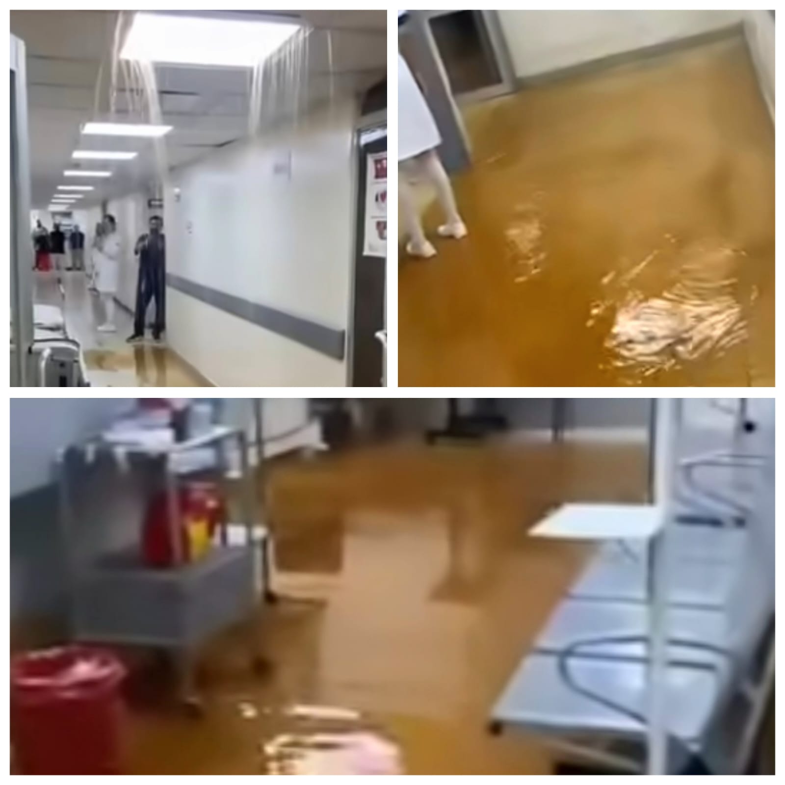 En videos difundidos en redes sociales se observa al personal médico y de enfermería trasladando a los pacientes, mientras el agua caía al interior de la sala, incluso con tonalidad oscura debido a su procedencia de depósitos estancados.
