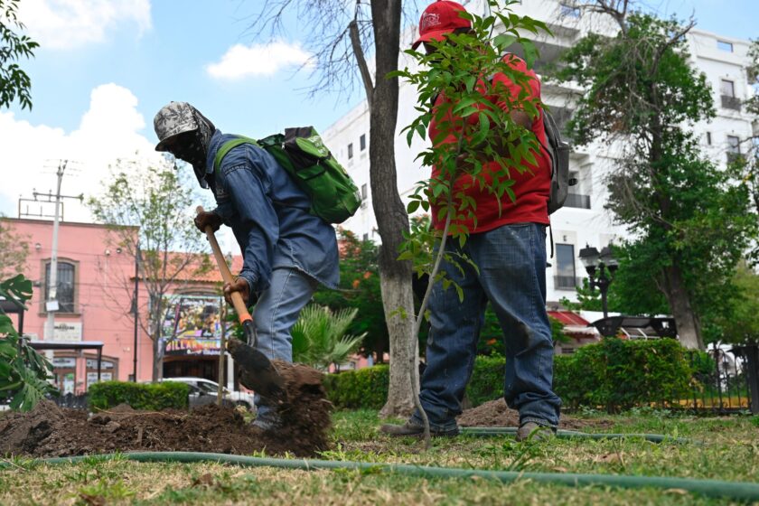 Esta semana inició la plantación de 17 nuevas especies, entre ellas Fresno Americano, Lila Canela y Lágrimas de San Pedro, las cuales se suman a las 13 jacarandas ya sembradas en distintos cuadrantes del espacio público.