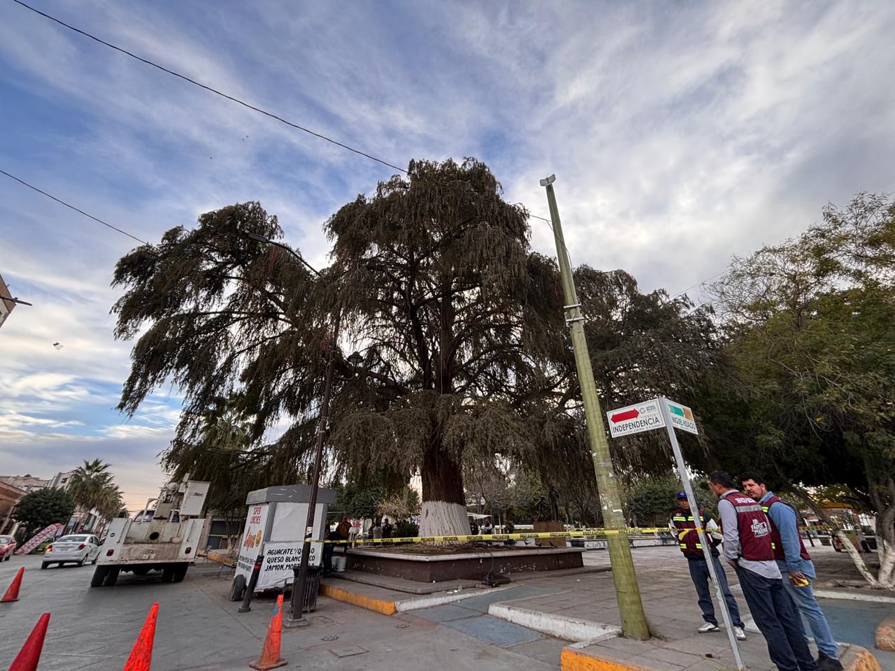 Inician mantenimiento integral del ahuehuete centenario de la Plaza de Armas