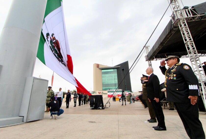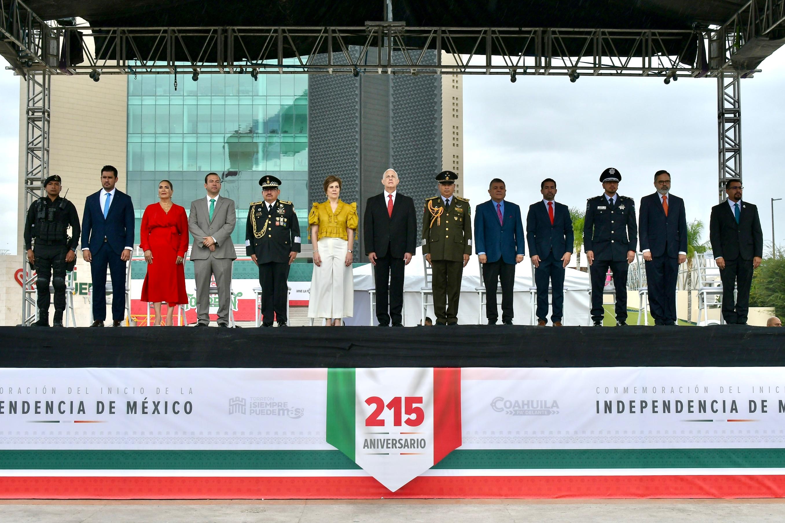 Torreón, Coahuila.- Con una asistencia de 25 mil personas, el alcalde Román Alberto Cepeda González presidió esta mañana el desfile cívico y militar, conmemorativo del 215 aniversario del inicio del movimiento de Independencia de México, en la explanada de la Plaza Mayor de Torreón.