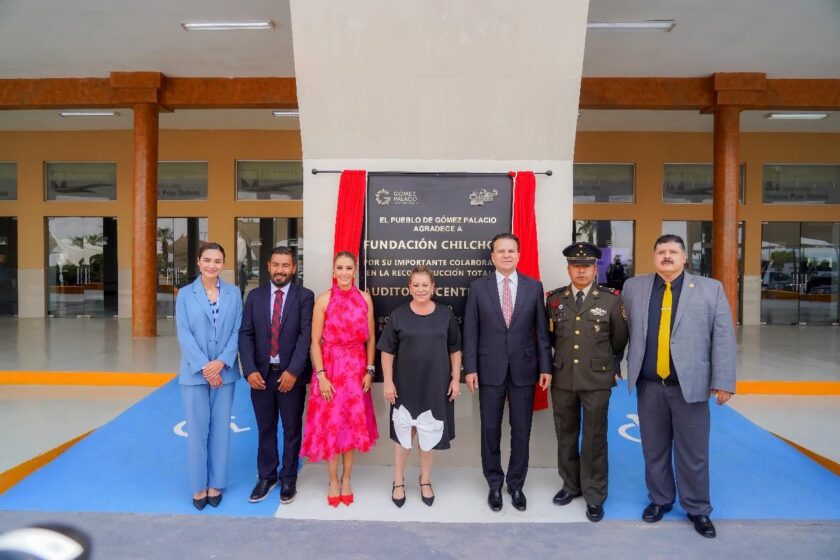 “Quiero hacer una mención muy especial a Fundación Chilchota, cuyo apoyo permanente ha sido fundamental: desde la donación de agua a través de los dos pozos que se encuentran al este de la ciudad hasta la rehabilitación total de este Gimnasio Auditorio Centenario, gracias a su apoyo las y los gomezpalatinos podrán disfrutar nuevamente de este espacio totalmente remodelado para vivir eventos deportivos, artísticos y culturales de gran nivel; ¡Como Gómez Palacio lo merece!”